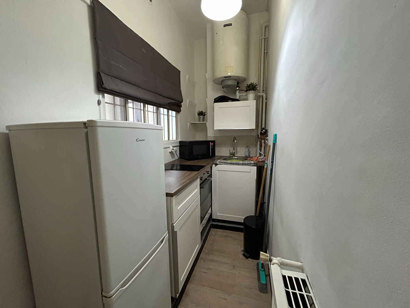L’appartement se compose d’un coin cuisine aménagée et équipée, d’un séjour, d’une chambre et d’une salle d’eau avec WC.