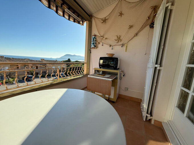 A Vendre à Saint Mandrier sur mer (83430). L’Agence RIVOLI immobilier vous présente ** EN EXCLUSIVITE ** : Sur les hauteurs du village et à deux pas du Port, dans un complexe résidentiel à « l’Esprit Vacances » avec Piscine, jeu de boules, jardin partagé et cours de tennis, un Appartement climatisé de Type 2 (44,41m² surface totale) aux prestations actuelles tendances et de qualité, avec une terrasse offrant une VUE MER panoramique sur le Port, la rade, le Grand large et monts alentours. Cave. Parking collectif sur les zones réservées au pied de l’immeuble. Les charges prévisionnelles annuelles sont de 1 120,00 euros. Dans une copropriété de 180 lots principaux.