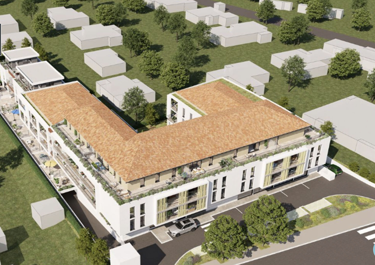 Le local dispose également de places de stationnement privatives